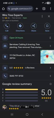 WNC Tree Experts exceeded expectations. They performed the work as initially agreed upon, arrived punctually, and I received the advertised 20% discount. They cleaned up the debris and were transparent about potential issues. I am very satisfied with their services and would recommend them.