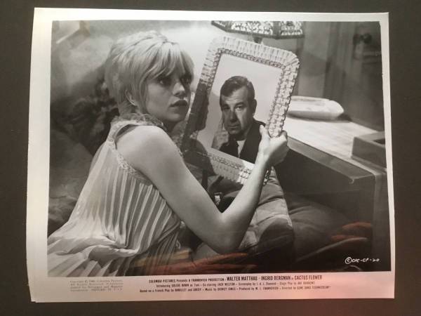 Nine 8" x 10" black and white glossy photos from Columbia Pictures film starring Ingrid Bergman, Goldie Hawn, Walter Matthau and Jack Weston. See photos.