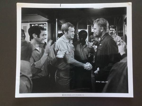 Six 8" x 10" black and white glossy photos from Universal City Studios film starring Charlton Heston, David Carradine, Ned Beatty, Stacy Keach, Stephen McHattie and Ronny Cox. See photos.