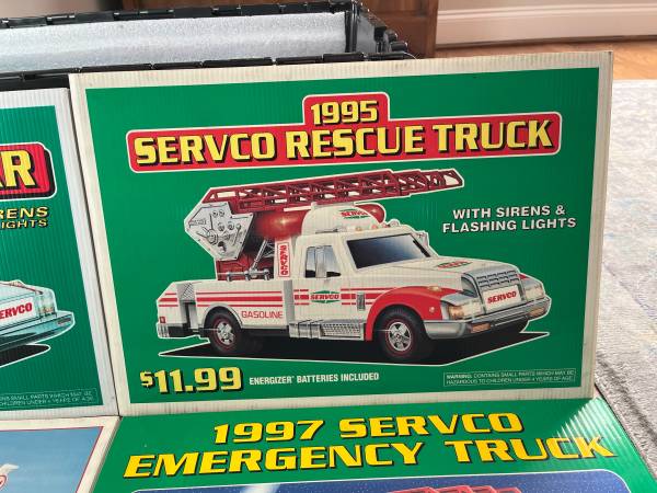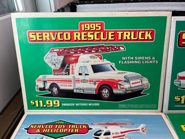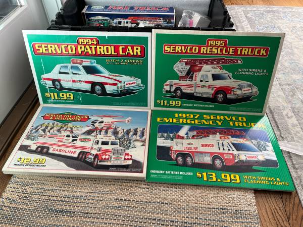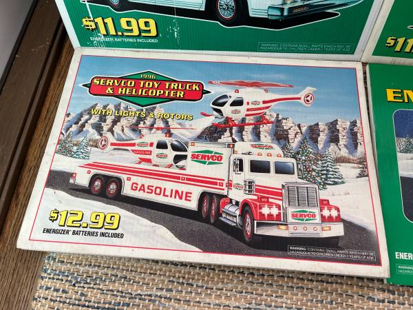 Up for sale are Four Servco Christmas Toy Truck Gas Station Double Sided Signs from 1994 1995 1996 and 1998. They are 18” x 12.5”. They are used, but in good condition. They have normal wear from use, and might clean up a little. Please see pictures for details, and message me with any questions. Can meet in Weaverville, Mars Hill, etc.