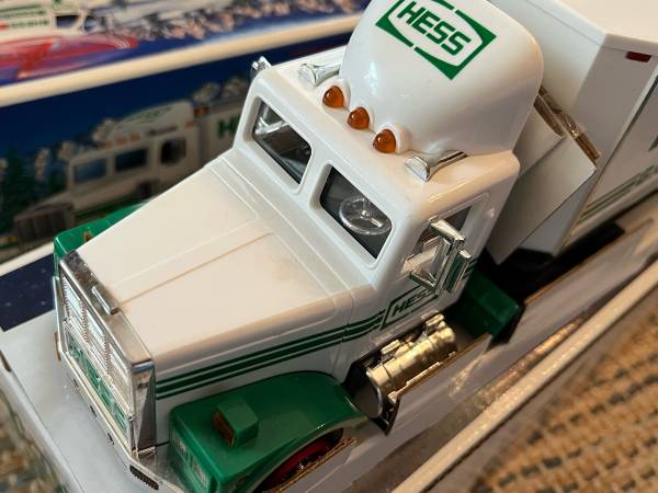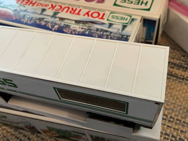 Up for sale are three Hess Trucks and some extra smaller vehicles. Included is the 1992 Truck / car hauler with car (this one was displayed a while, and has a little discoloration - see pictures), the 1995 Truck and helicopter, and the 2002 Truck and bi-plane. Also included is an extra helicopter, two cars, and a dune buggy. Please see pictures for details, and message me with any questions. Can meet in Weaverville, Mars Hill, etc.