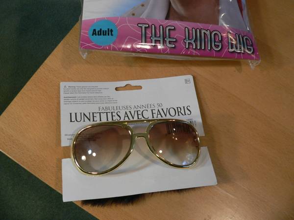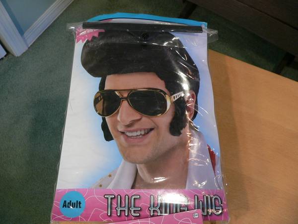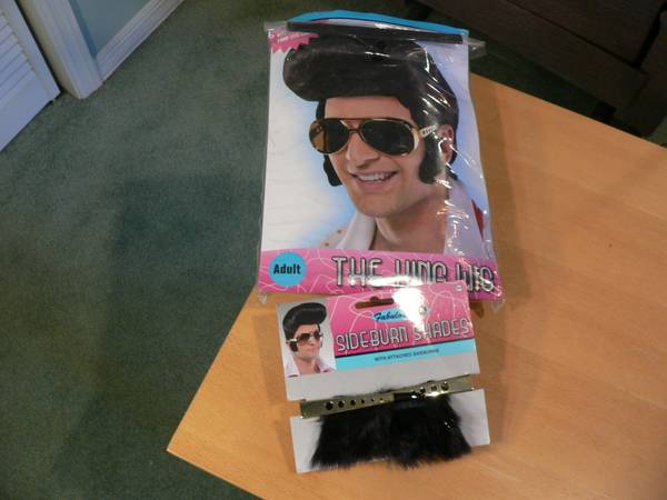 This is a Elvis Pressley Wig, sideburns with glasses Costume. It was tried on a few times but was never worn in public. It is in excellent condition with all the original packaging - 10 dollars