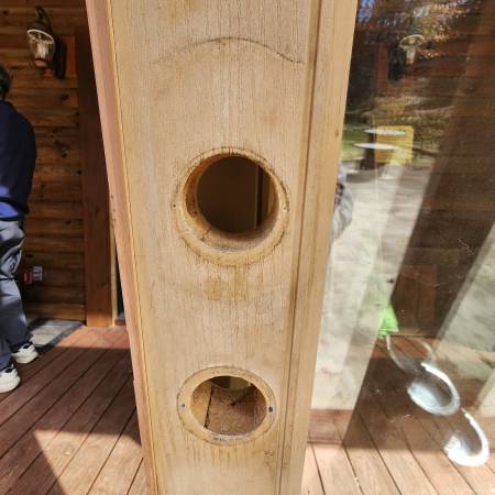 Distinction Doors exterior 2 panel swinging wood double doors with full lite clear glass, left hand center inswing. 2 lockset bore holes Dimensions are 79-1/4"H x 35-3/4"W and 79-1/4"H x 36-1/4"W with standard 1-3/4" thickness. Frame, threshold and hinges are NOT included.