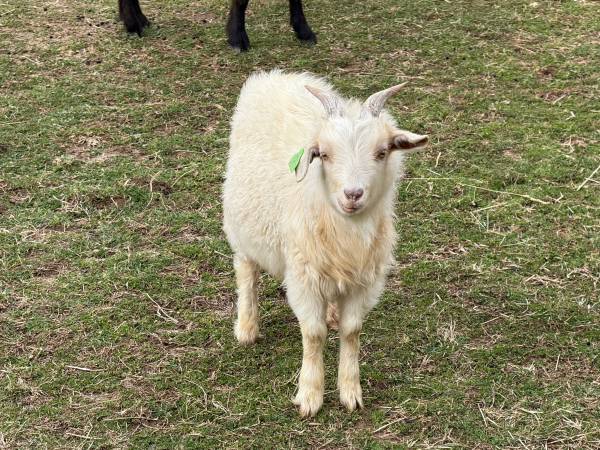 Four left - One female white type C (brush/pull out Cashmere like fiber) and three wethers, white, type A (must be sheared, with a mohair quality)